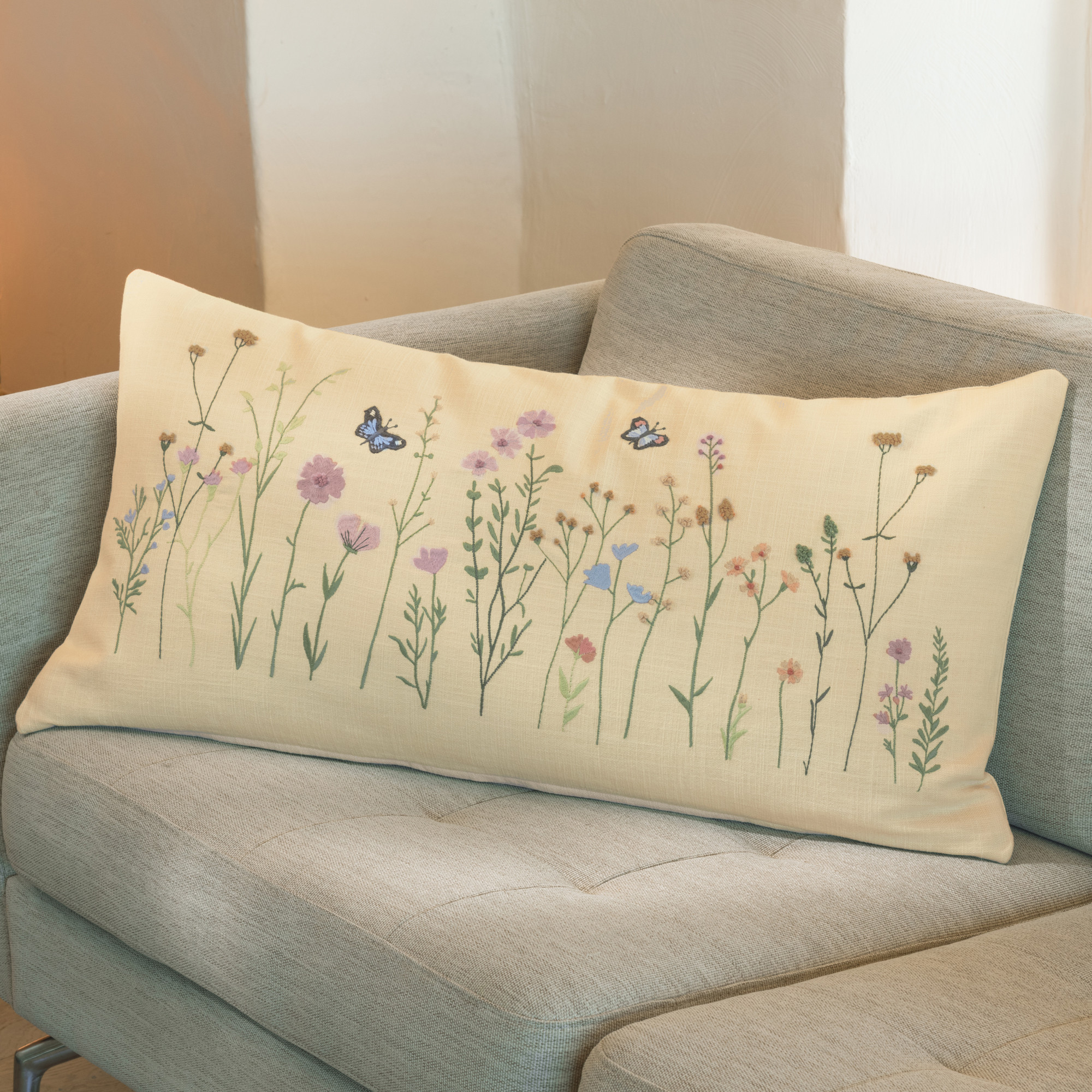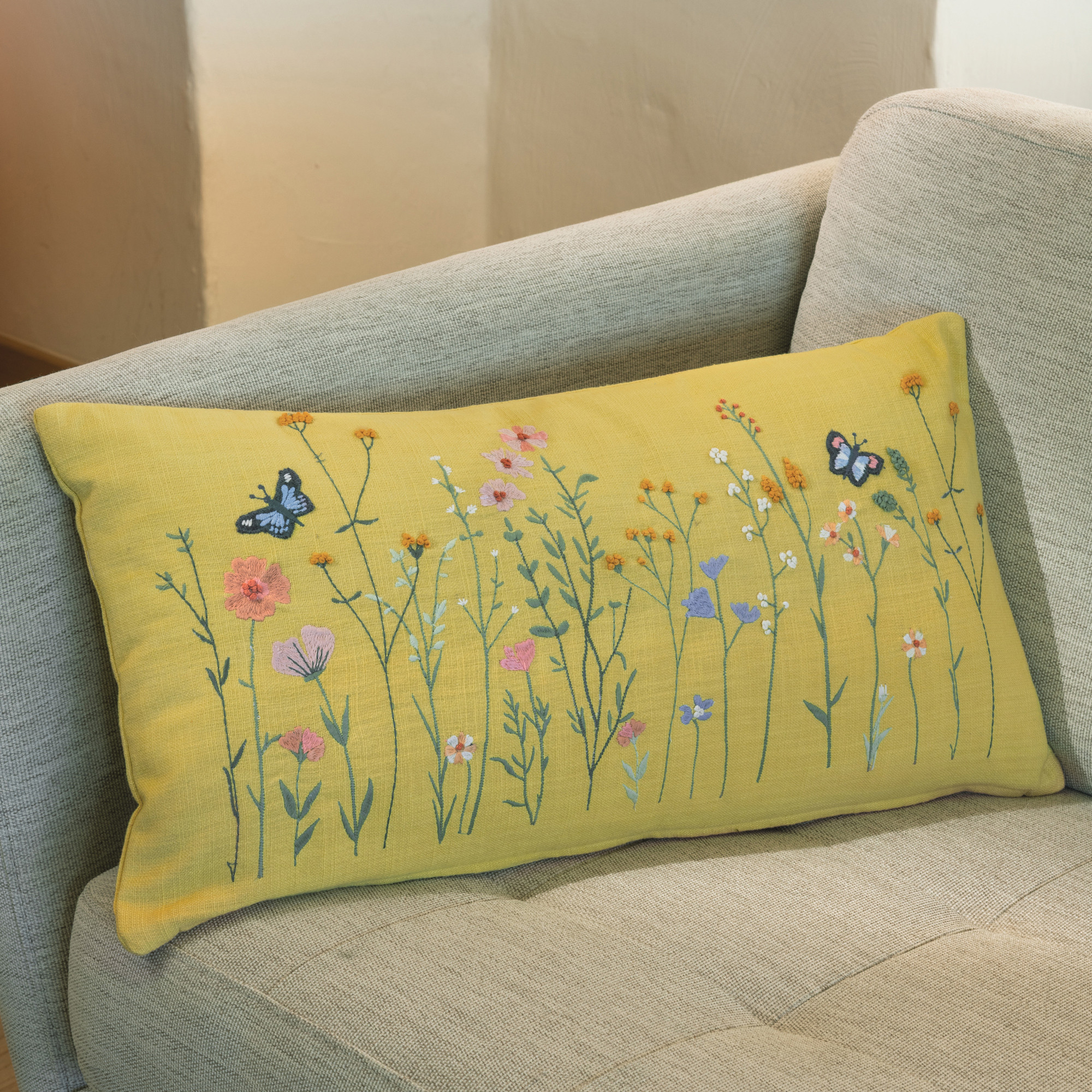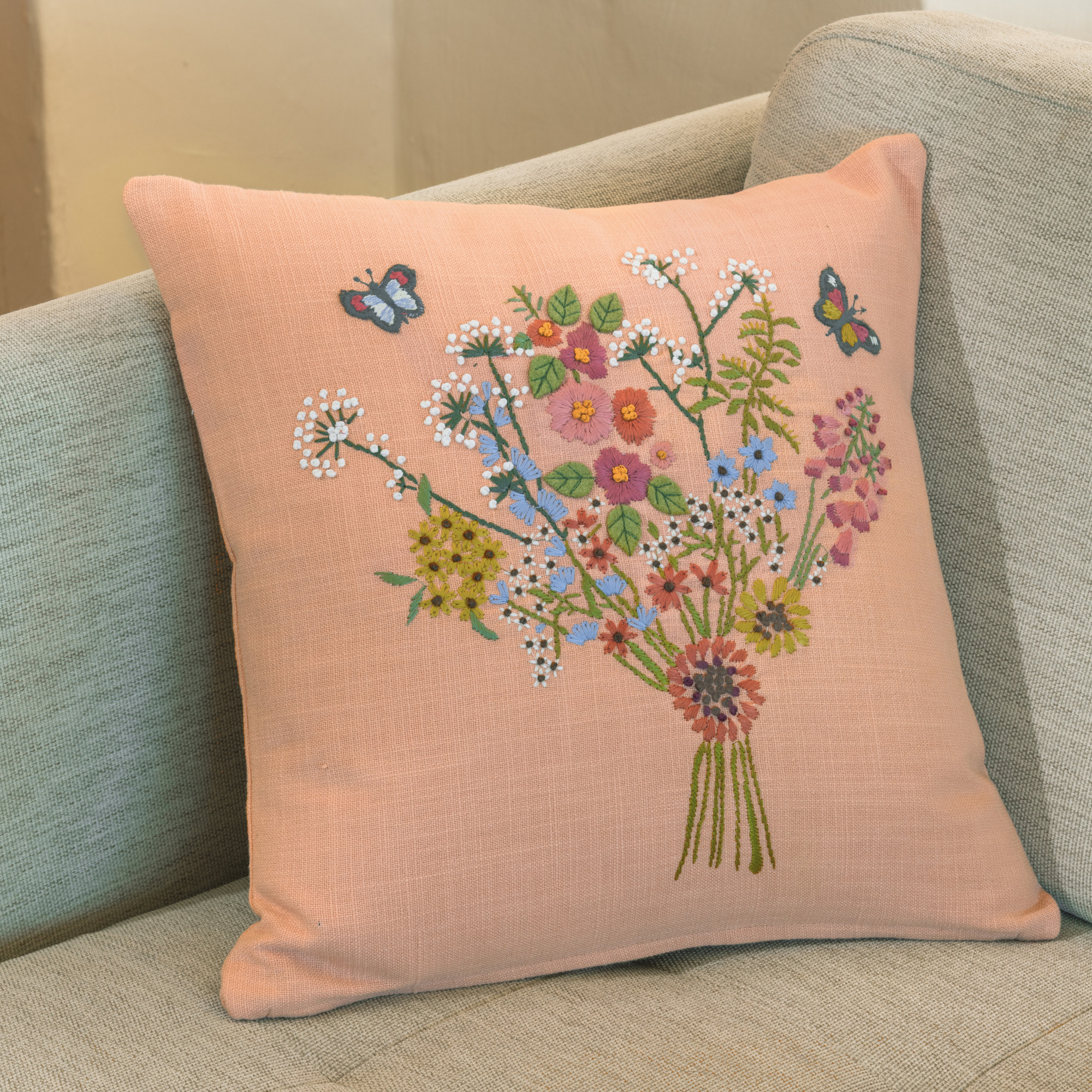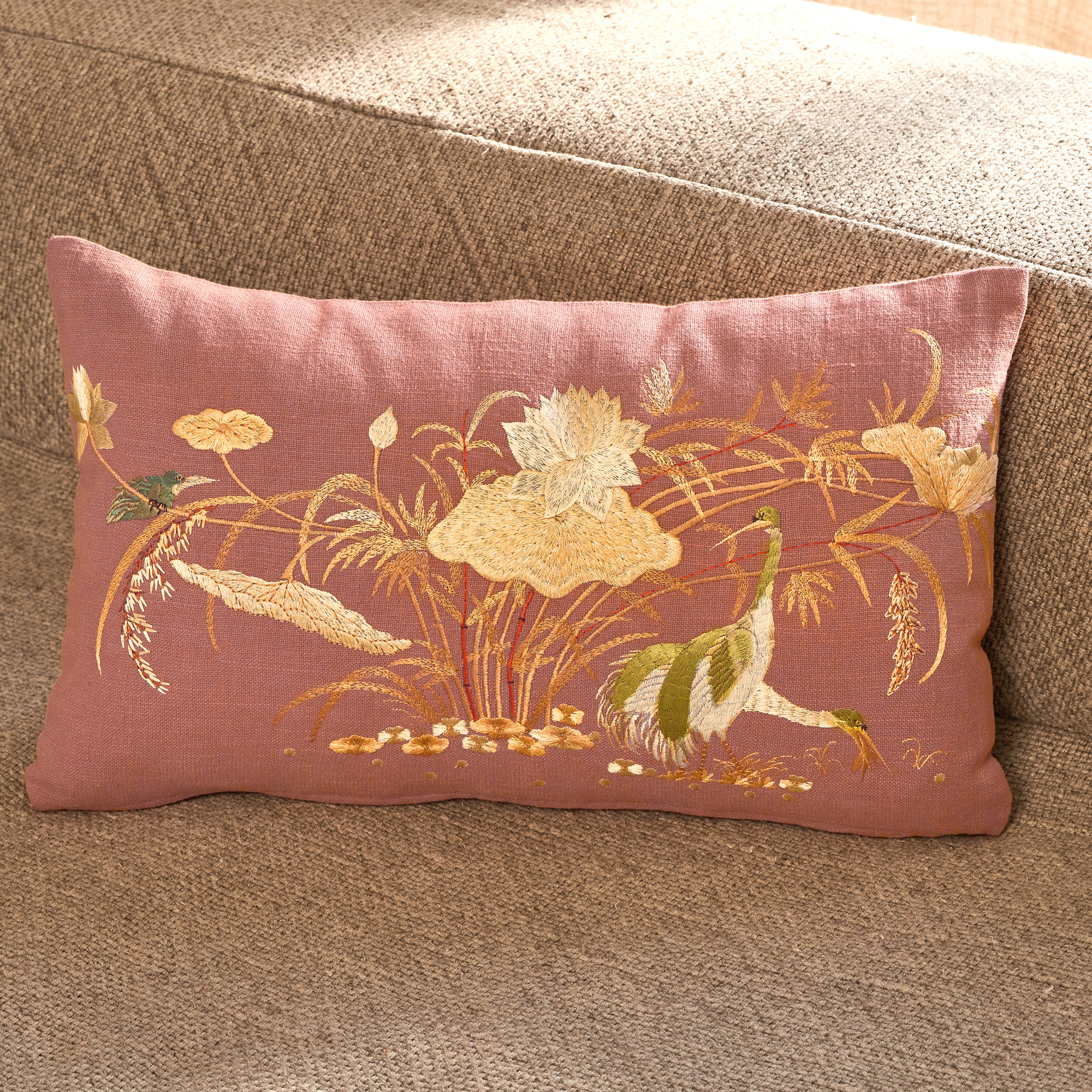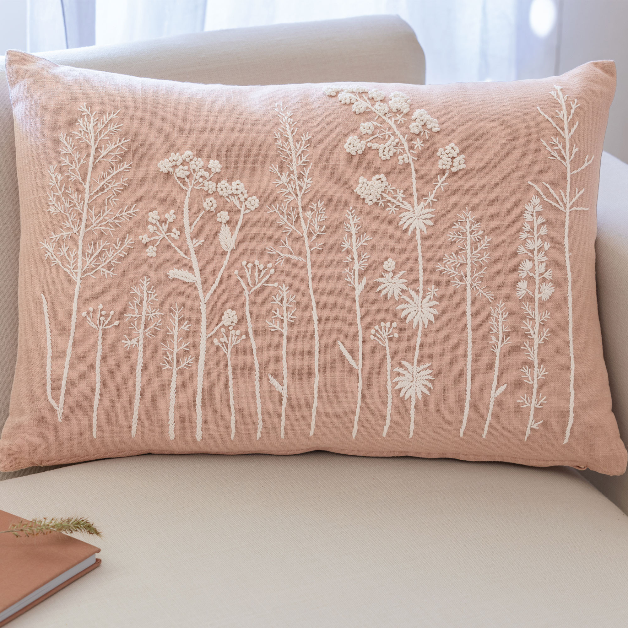 Coussin brodé herbierEn campagne