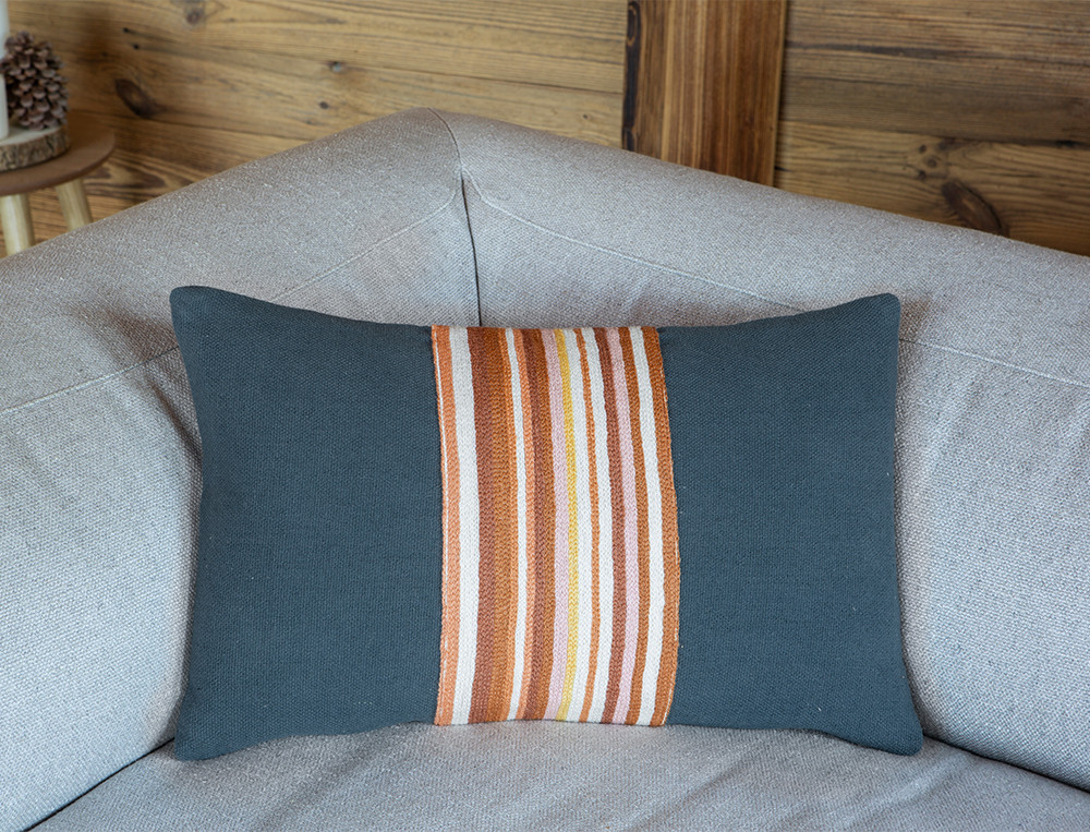 Coussin brodé rayuresAu sommet