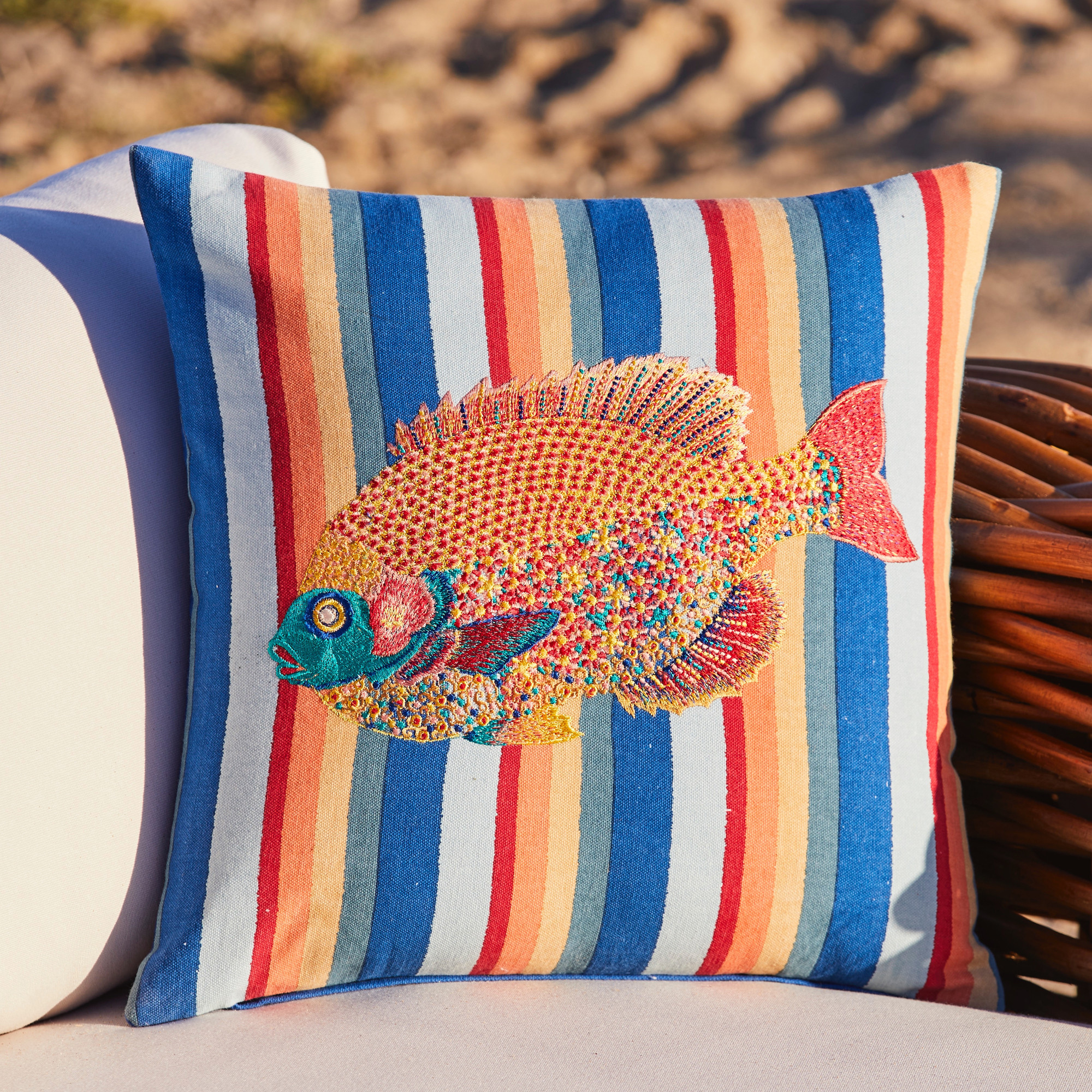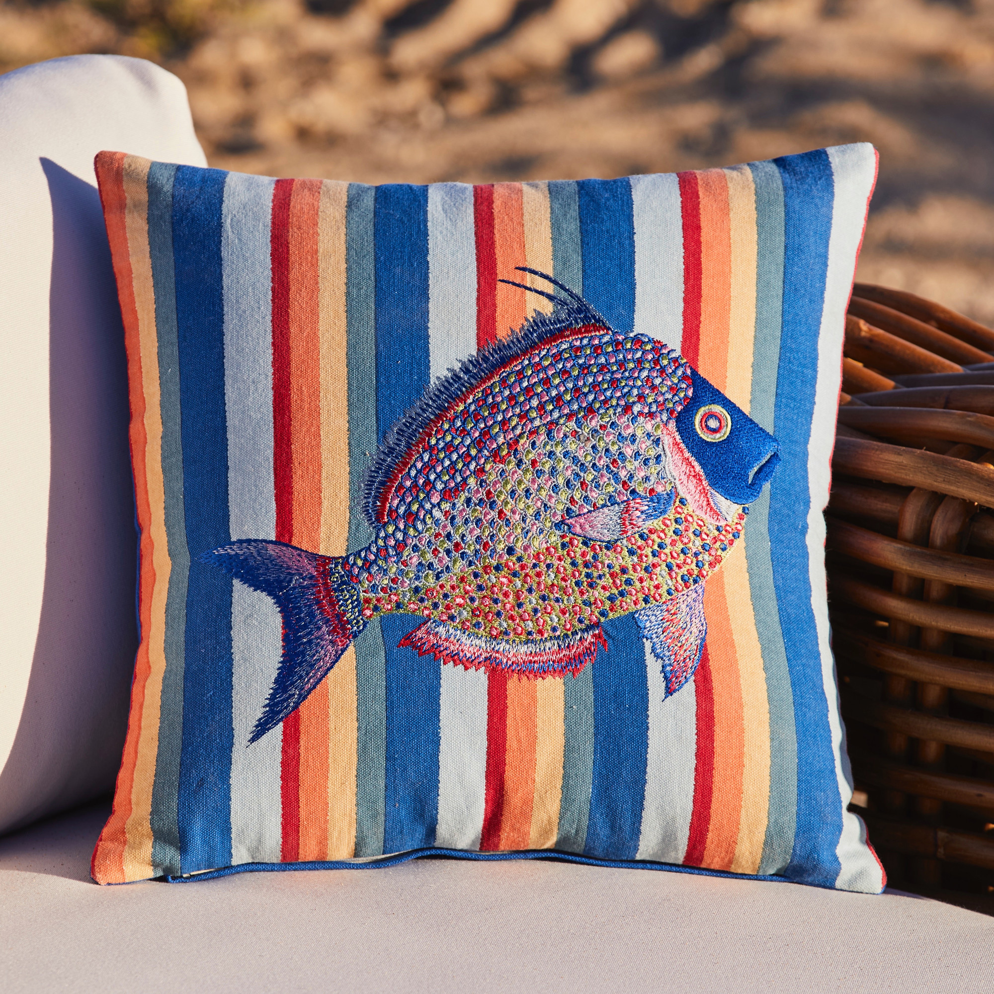 Coussin brodé et rayéAir du large