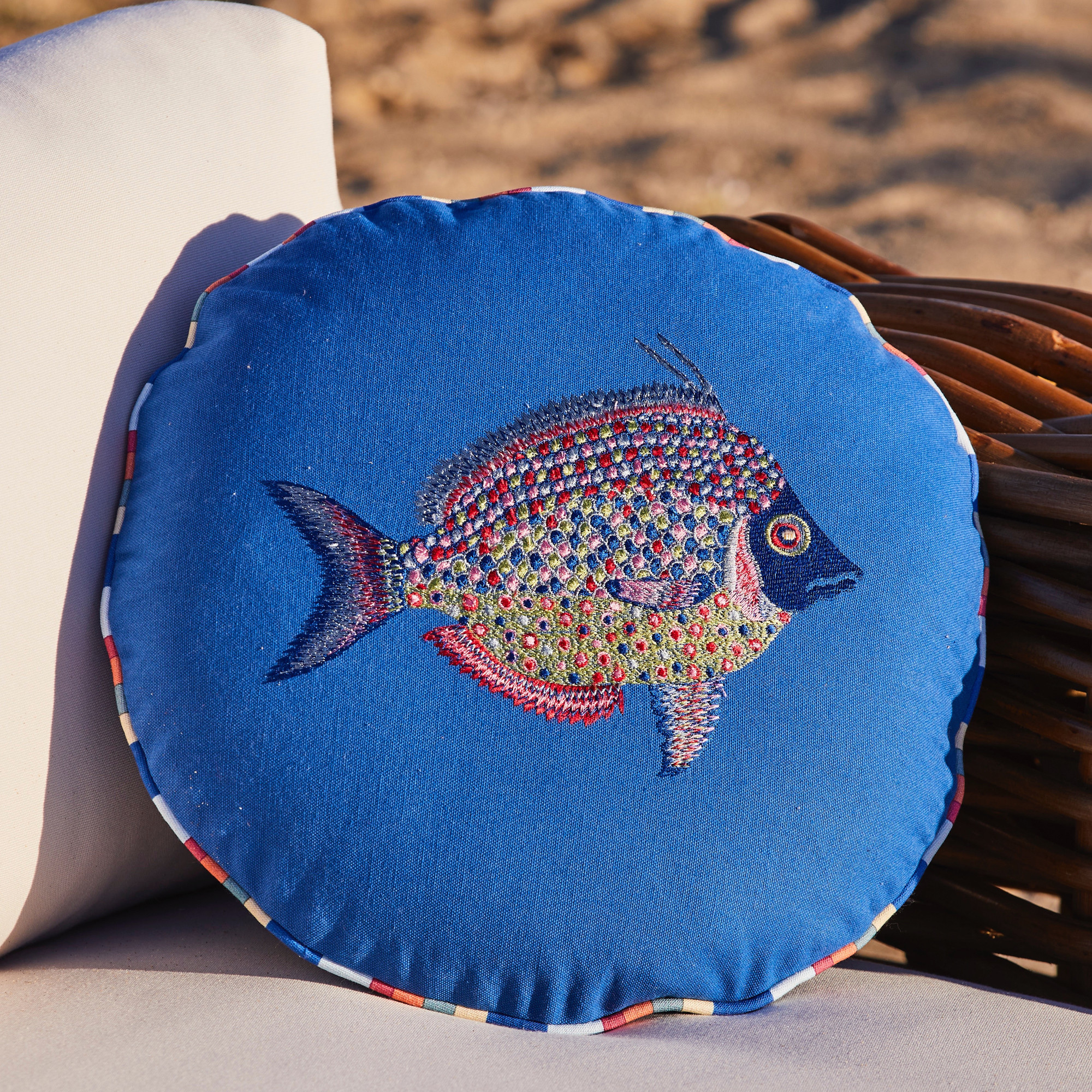 Coussin brodé rondAir du large