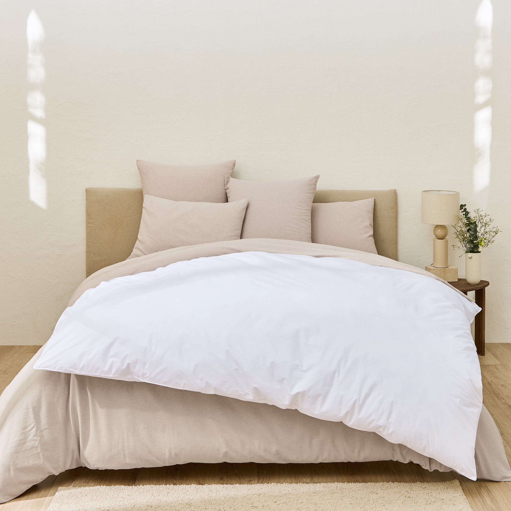 Pack édredon housse flanelle tissé-teintNuage flanelle