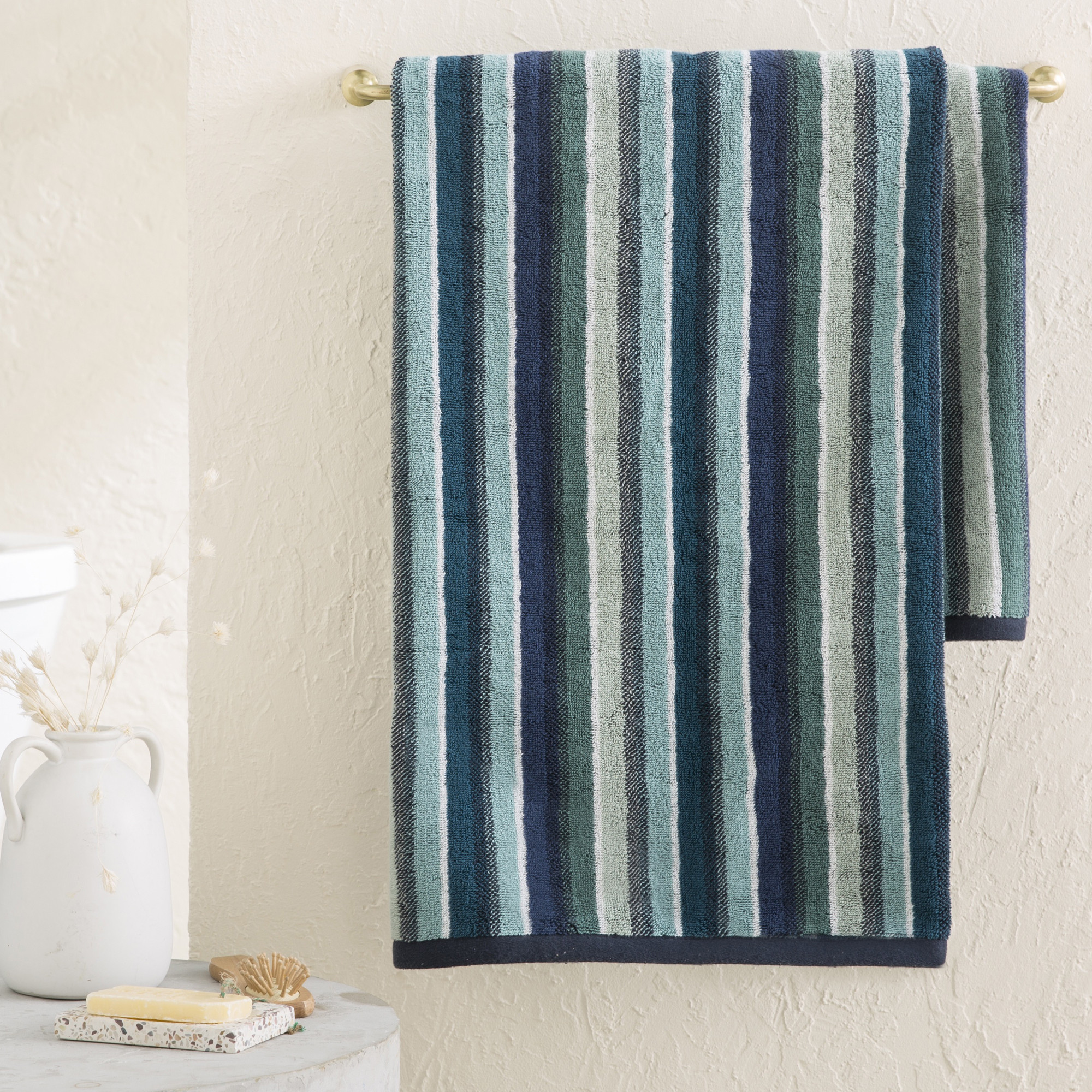 Drap de bain rayéBaies célestes